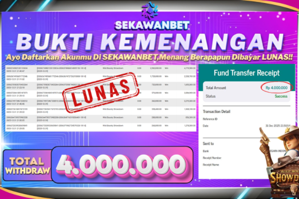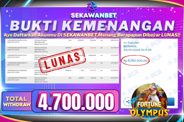 Selamat kepada User id : SA***** Telah berhasil mendapatkan kemenangan besar pada permainan slot GATES OF OLYMPUS 1000 kemenangan Sebesar Rp.26.000.000, Setelah mengisi formulir withdraw dengan kurung waktu hanya 5 – 10 menit pihak sekawanbet sudah melakukan transfer kepada pemilik Userid dan dana sudah dapat di cairkan oleh pemenang. Bukti pembayaran yang kami berikan merupakan bukti pembayaran yang SAH / VALID yang langung di dapatkan melalui tanda…