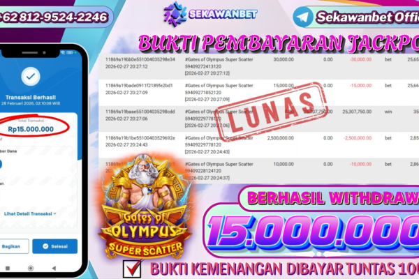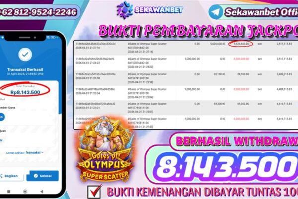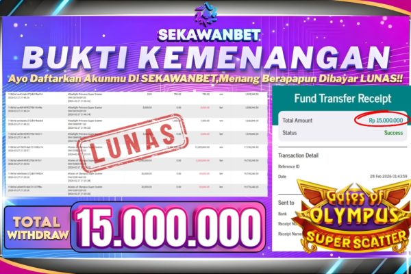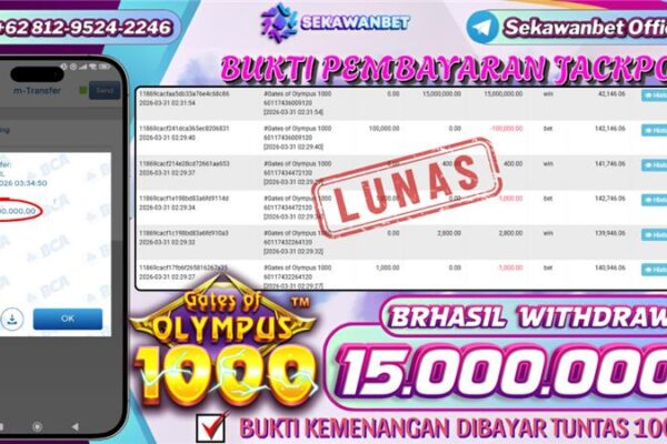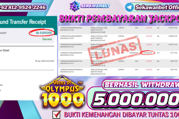 Selamat kepada User id : CA***** Telah berhasil mendapatkan kemenangan besar pada permainan slot GATES OF OLYMPUS 1000 kemenangan Sebesar Rp.5.000.000, Setelah mengisi formulir withdraw dengan kurung waktu hanya 5 – 10 menit pihak sekawanbet sudah melakukan transfer kepada pemilik Userid dan dana sudah dapat di cairkan oleh pemenang. Bukti pembayaran yang kami berikan merupakan bukti pembayaran yang SAH / VALID yang langung di dapatkan melalui tanda…