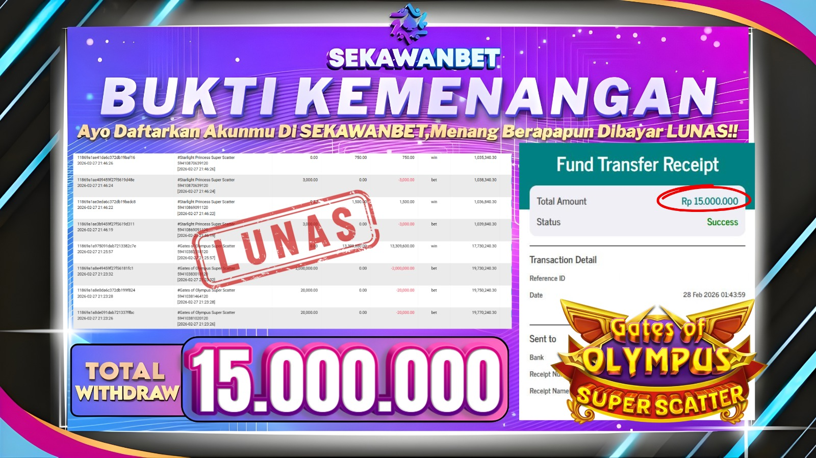 ⚡️ Masih mikir buat daftar? Nih buktinya cuan terus SEKAWANBET! Gaskan sebelum gacornya pindah tangan!