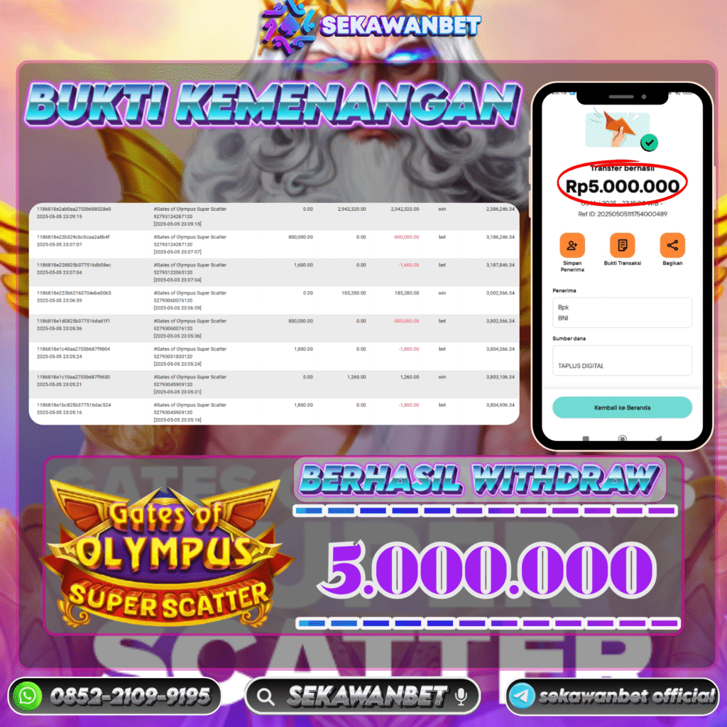 ⚡️ Masih mikir buat daftar? Nih buktinya cuan terus SEKAWANBET! Gaskan sebelum gacornya pindah tangan!