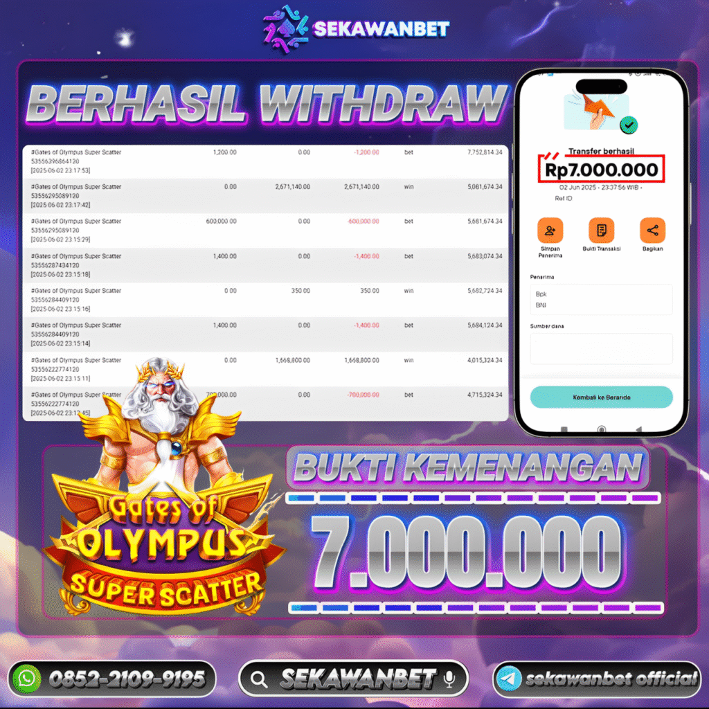 SEKAWANBET JACKPOT SLOT GATES OF OLYMPUS SUPER SCATTER ⚡ Rp.7.000.000,- LUNAS!!!