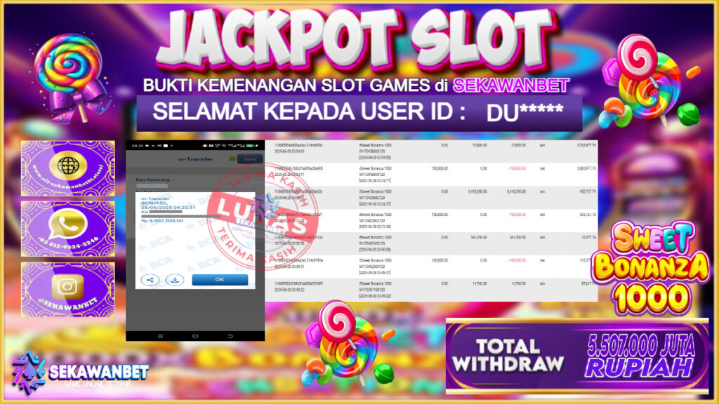 Selamat kepada User id :Ā DU*****Ā TelahĀ berhasilĀ mendapatkan kemenangan besar pada permainan slotĀ SWEET BONANZA 1000 Ā kemenangan SebesarĀ Rp.5.507.000,Ā Setelah mengisi formulir withdraw dengan kurung waktu hanya 5 ā 10 menit pihakĀ sekawanbetĀ sudah melakukan transfer kepada pemilik Userid dan dana sudah dapat di cairkan oleh pemenang.Ā Bukti pembayaran yang kami berikan merupakan bukti pembayaran yangĀ SAH / VALIDĀ yang langung di dapatkan melalui tanda transfer transaksi dari Bank yang diĀ tuju.