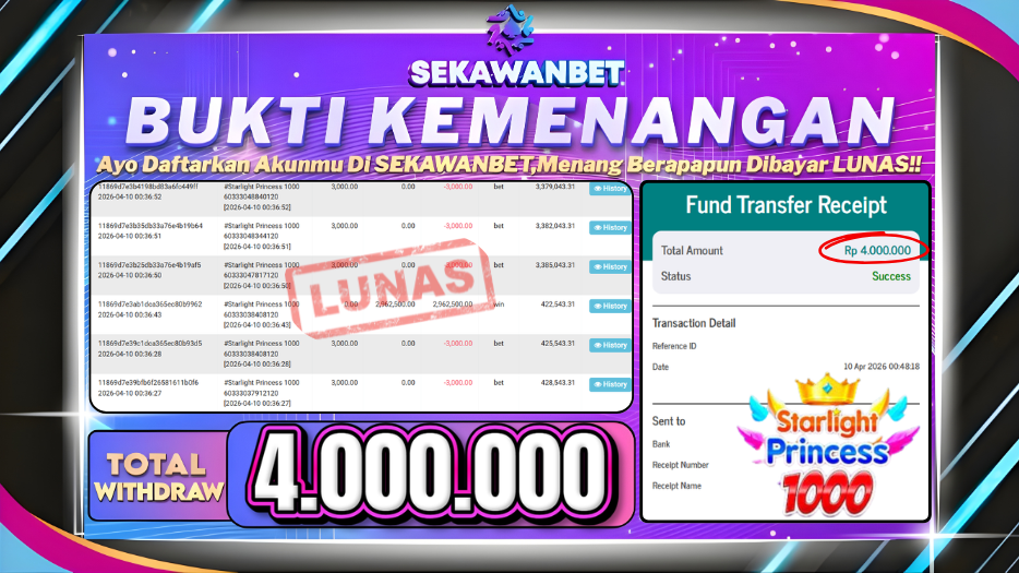 BUKTI PEMBAYARAN SEKAWANBET – Situs SEKAWANBET merupakan Situs Slot idn sport yang membayar semua kemenangan member hingga lunas.