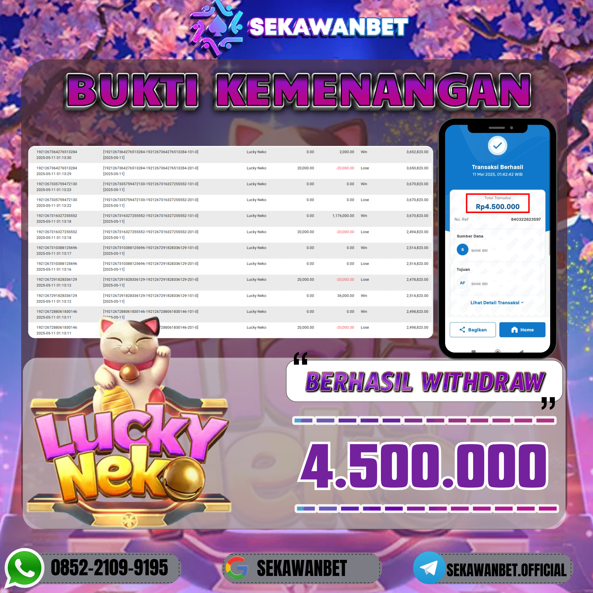 SEKAWANBET JACKPOT SLOT LUCKY NEKO 🐈Rp.4.500.000,- LUNAS!!!