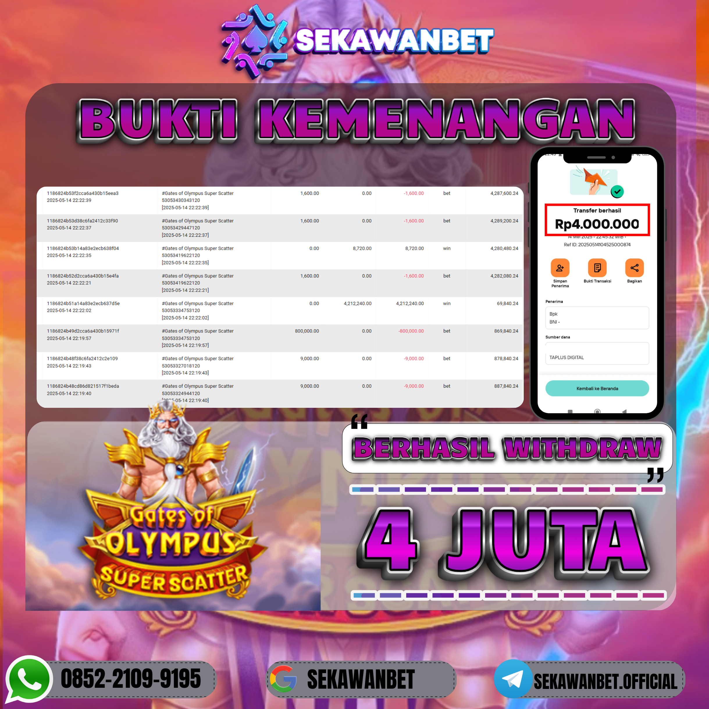 SEKAWANBET JACKPOT SLOT GATES OF OLYMPUS SUPER SCATTER ⚡ Rp.4.000.000,- LUNAS!!!