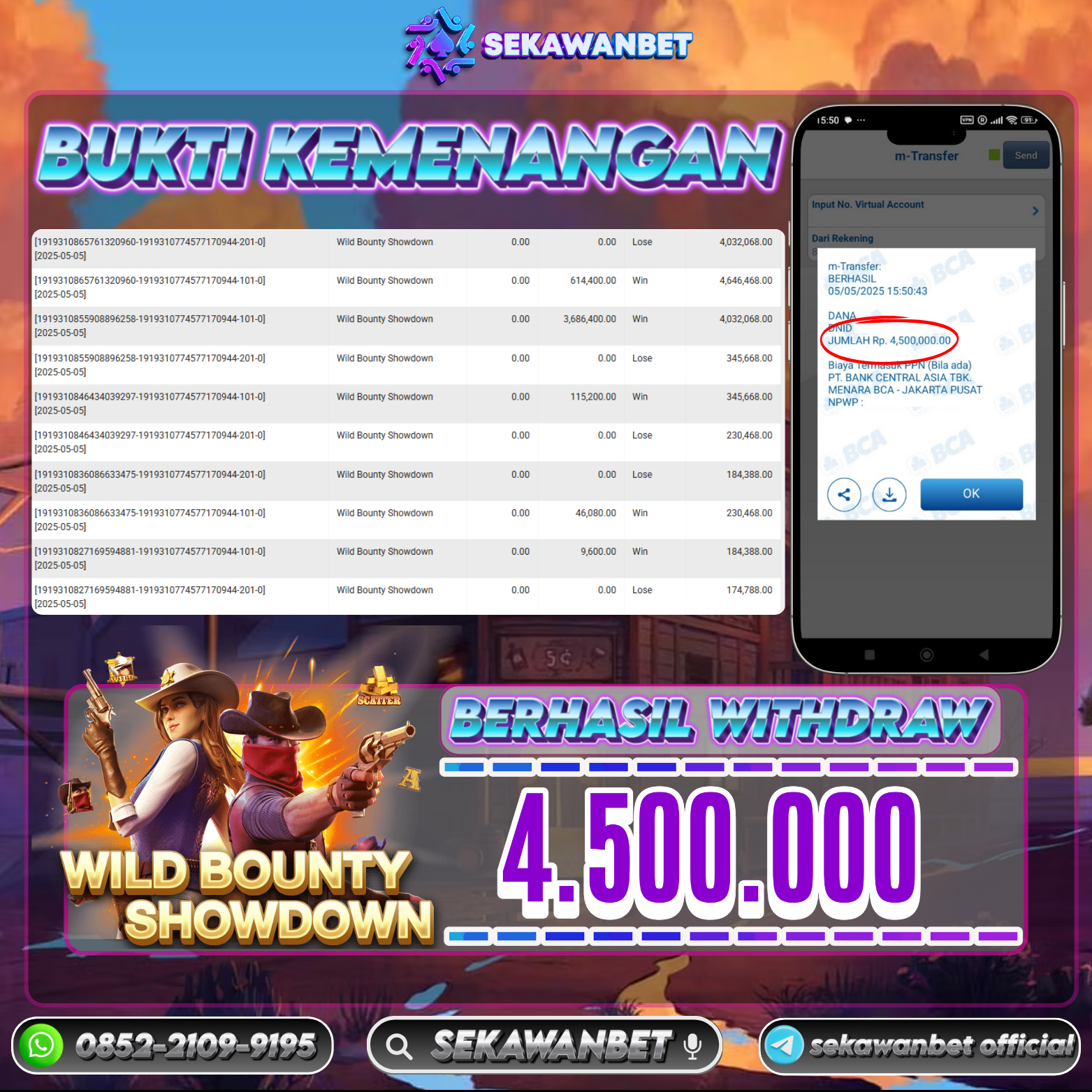 Selamat kepada User id : B*****TO Telah berhasil mendapatkan kemenangan besar pada permainan slot GATES OF OLYMPUS SUPER SCATTER kemenangan Sebesar Rp.5.000.000, Setelah mengisi formulir withdraw dengan kurung waktu hanya 5 – 10 menit pihak sekawanbet sudah melakukan transfer kepada pemilik Userid dan dana sudah dapat di cairkan oleh pemenang. Bukti pembayaran yang kami berikan merupakan bukti pembayaran yang SAH / VALID yang langung di dapatkan melalui tanda…