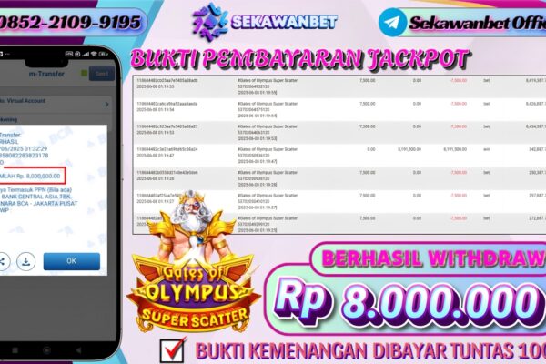 Selamat kepada User id : JS***** Telah berhasil mendapatkan kemenangan besar pada permainan slot MANIA OLYMPUS kemenangan Sebesar Rp.4.101.000, Setelah mengisi formulir withdraw dengan kurung waktu hanya 5 – 10 menit pihak sekawanbet sudah melakukan transfer kepada pemilik Userid dan dana sudah dapat di cairkan oleh pemenang. Bukti pembayaran yang kami berikan merupakan bukti pembayaran yang SAH / VALID yang langung di dapatkan melalui tanda transfer transaksi dari…